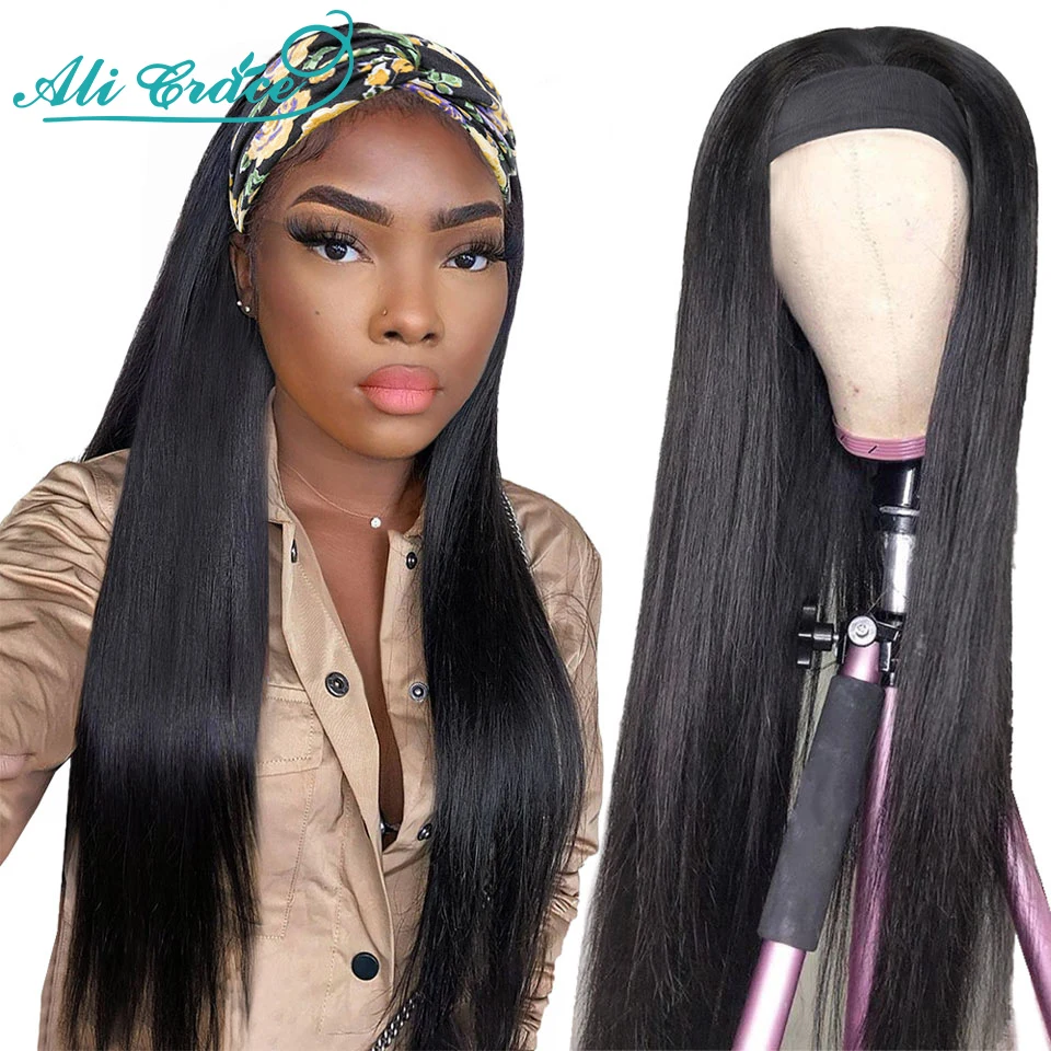 Ali Grace Hair Headband Wig For Women Brazilian Bone Straight Human Hair Wig With Adjustable Bangs No Glue No Gel Headband Wigs Full Machine Wigs Aliexpress